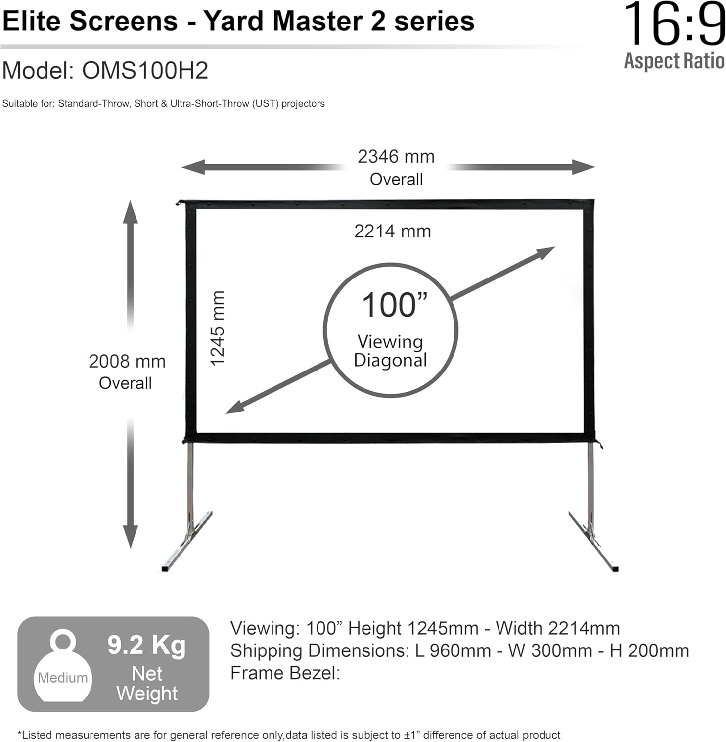 Het Elite Screens OMS120H2 263x148cm is een lichtgewicht, draagbaar projectiescherm dat in de eerste plaats bedoeld is om buiten op te stellen, maar het kan ook binnen gebruikt worden, en het is ongelooflijk eenvoudig op te zetten en af te breken.